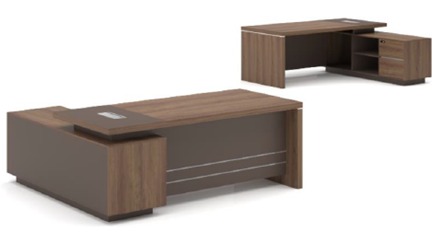 Manager Office desk with side desk and built in 2 Drawers with password lock and 2 shelves. High Quality. Melamine Top with oil painting. 50mm thickness beveled edge. Heat and anti sctraches proof. Side table can be fixed left or right.